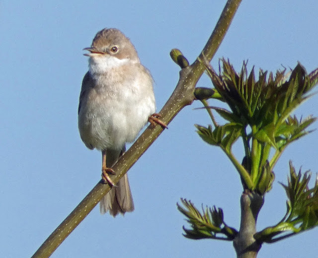 This afternoon we walked at Reculver and saw 3 Whitethroats, 2 Blackcaps, 1 Common Buzzard, 2 Lesser Black-backed Gulls, 2 Chiffchaffs, 2 Long-tailed Tits, 2 Greylag Geese, 8 male Mallard, 2 Gadwall, 2 Oystercatchers, 2 Shelduck, 10 Sand Martins and 1 Cetti's Warbler